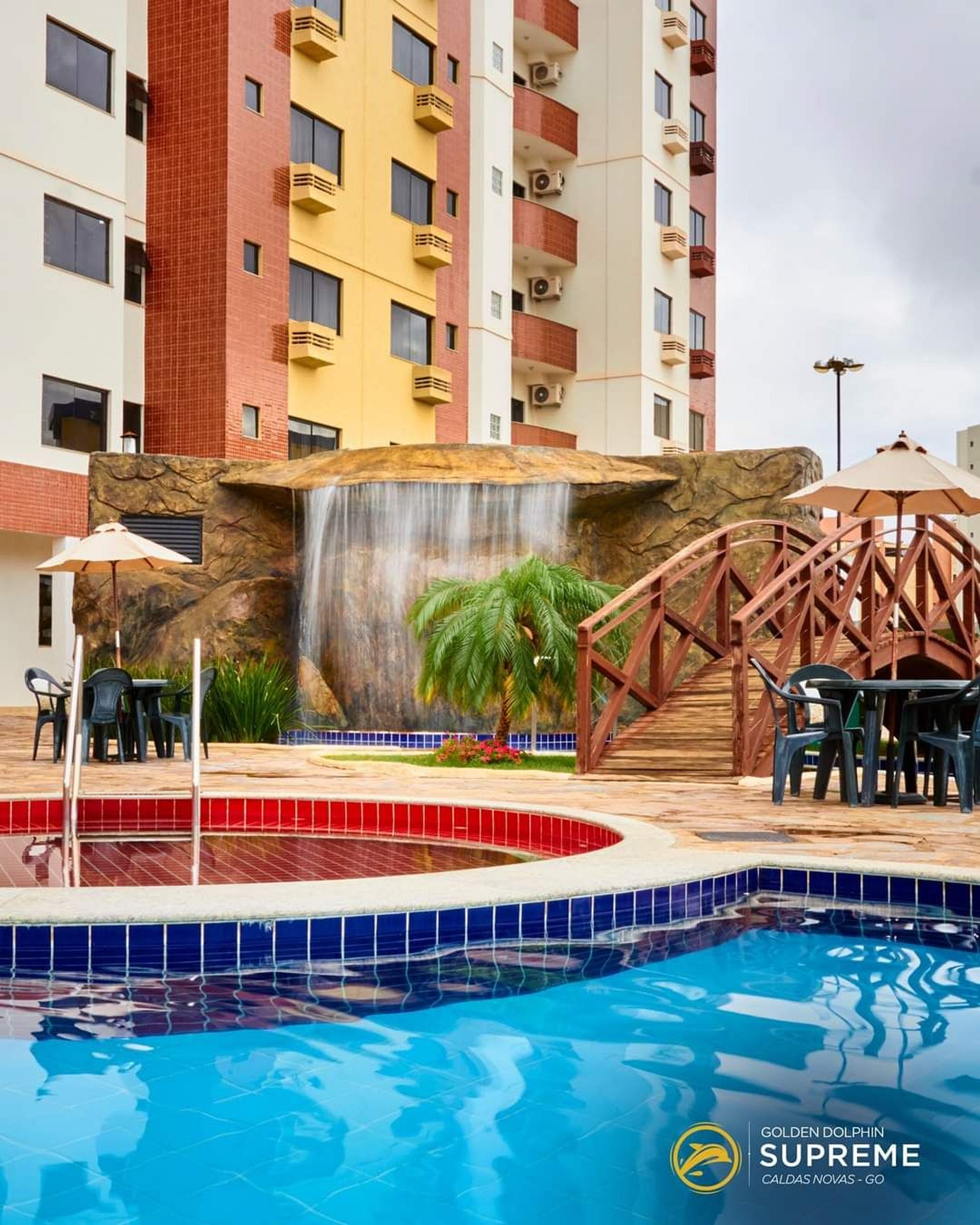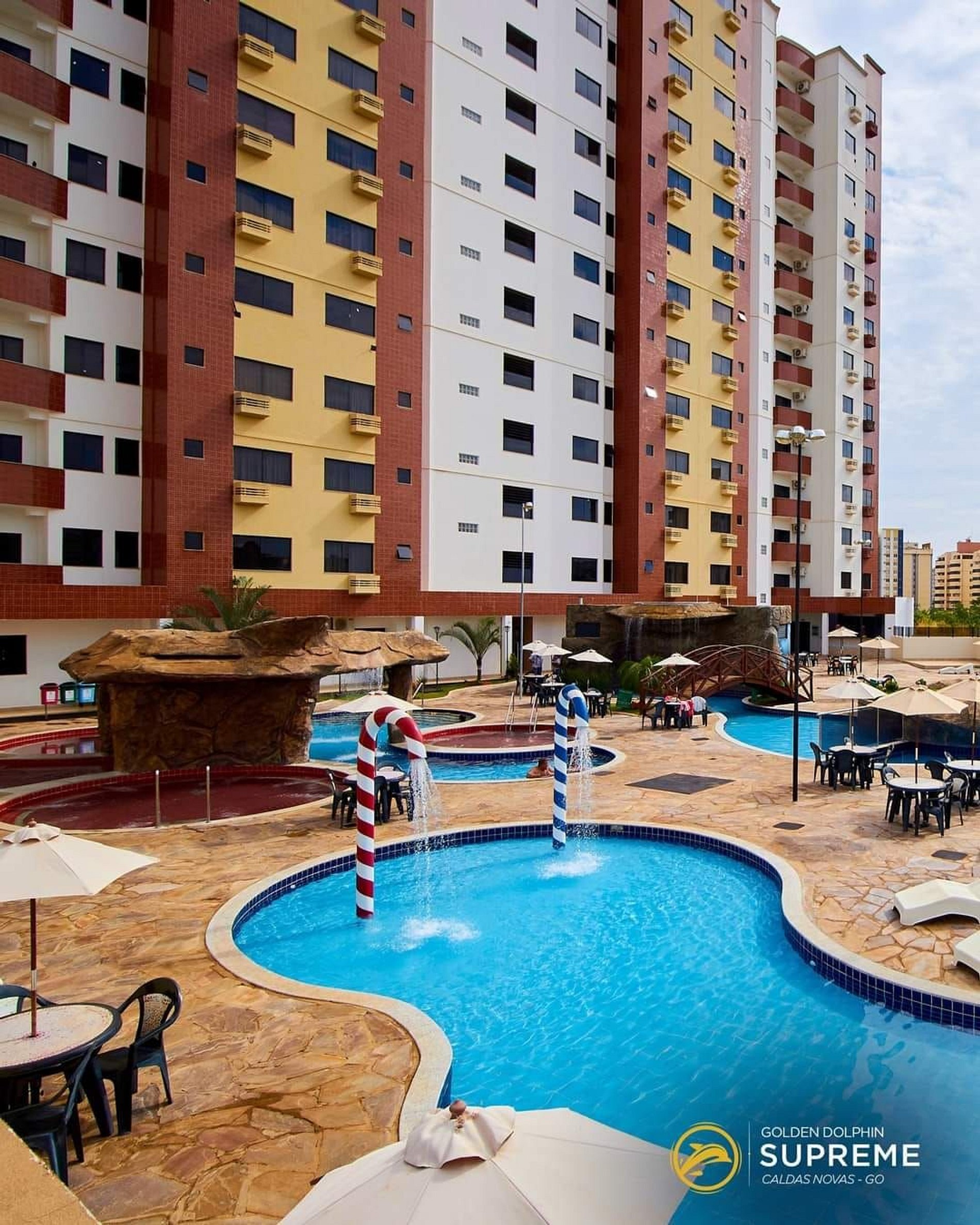 Golden Dolphin Grand Hotel - Experiência única em Caldas Novas! Aproveite nossas piscinas 24h, apartamentos modernos com Wi-Fi gratuito e vista para o jardim. Localizado no tranquilo bairro Jardim Belvedere, a poucos minutos do centro da cidade e das principais atrações. Desfrute de restaurante, bar, sauna, playground e muito mais. Ideal para famílias e grupos, oferecendo conforto e lazer completo.